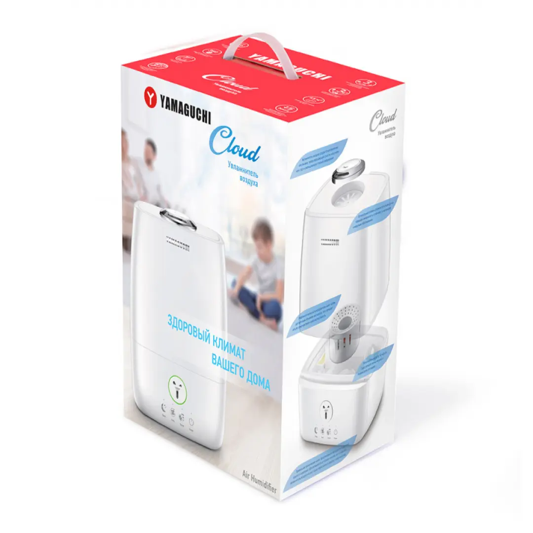 Увлажнитель воздуха «Yamaguchi Cloud» оборудован сенсорной панелью управления, авторегулятором влажности и тремя режимами работы. Устройство оснащено объемным резервуаром на 4 литра воды и керамическим фильтром, который не только очищает, но оказывает и антибактериальный эффект.