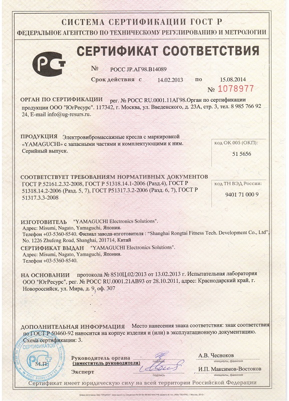 - 3 года гарантии на все массажные кресла от компаний Yamaguchi, US Medica, Anatomico.