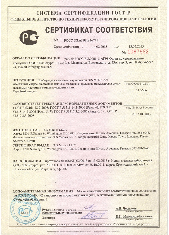 Сертификаты продукции: